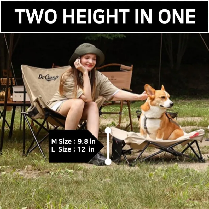 Two Heights In One, Dog Bed Cot For Pet, Waterproof Mesh, Adjustable Height, Indoor/Outdoor (Beige, Large)