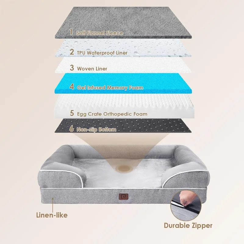 Orthopedic Dog Beds For Extra Large, Waterproof Memory Foam XXL Pet Bed With Sides, Non-Slip Bottom And Egg-Crate