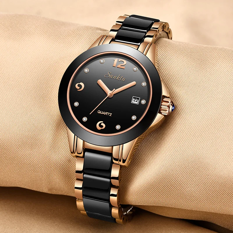 LIGE Sunkta Fashion Elegant Women's Watches Casual Luxury Ceramic Waterproof Ladies Clock Auto Date Dress Quartz Woman Watch+Box