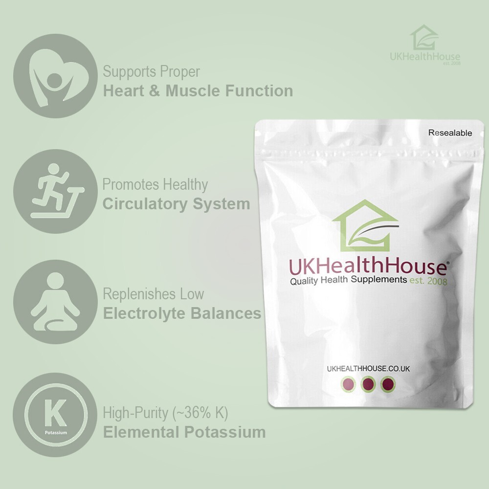 Potassium citrate powder is an essential nutrient for health. Our potassium citrate contains 36% pure potassium. Take with food and at least 8 oz. of water or other beverage. Potassium Citrate Powder Vegan No Fillers No Binders 100% Clean.